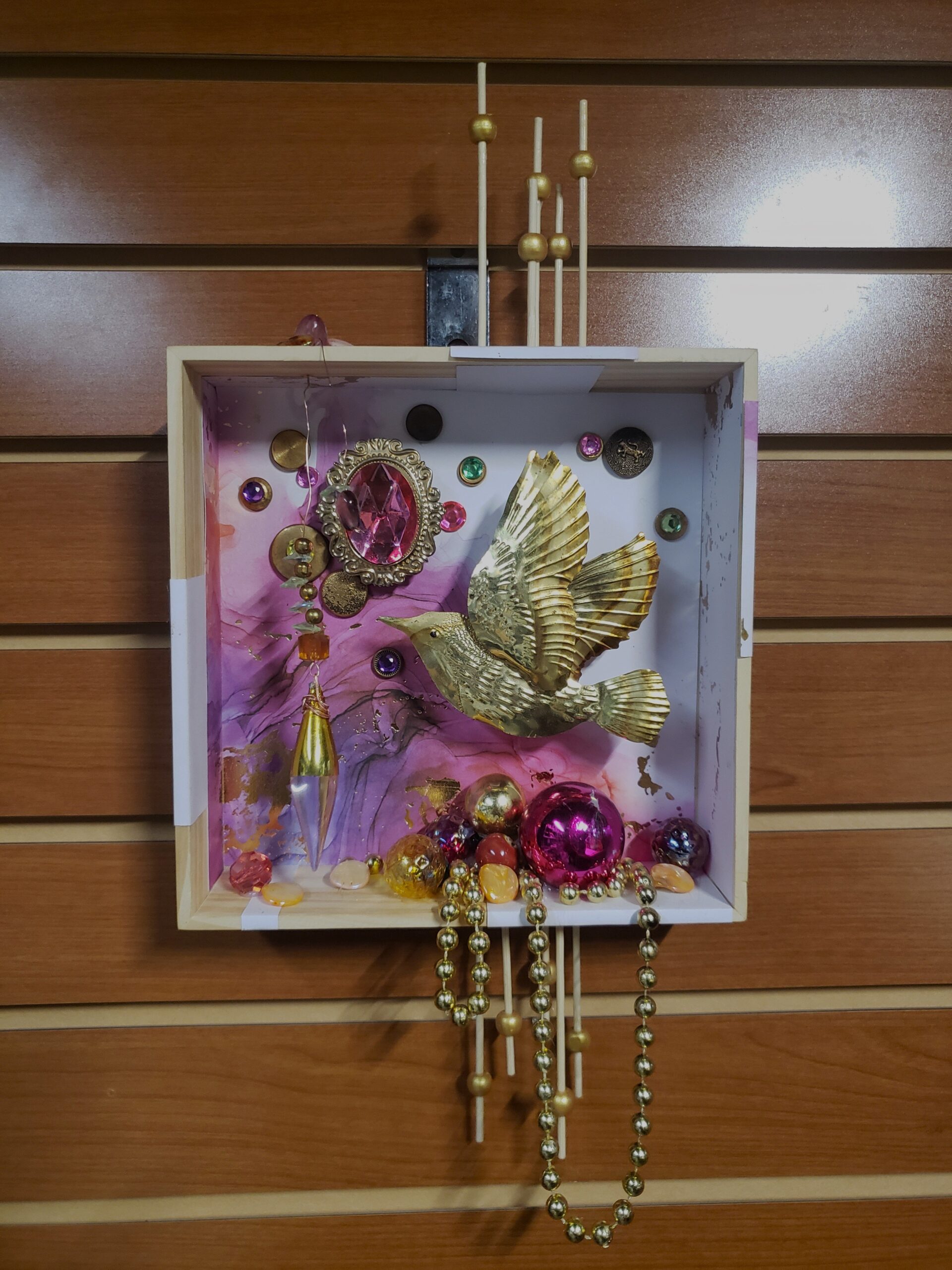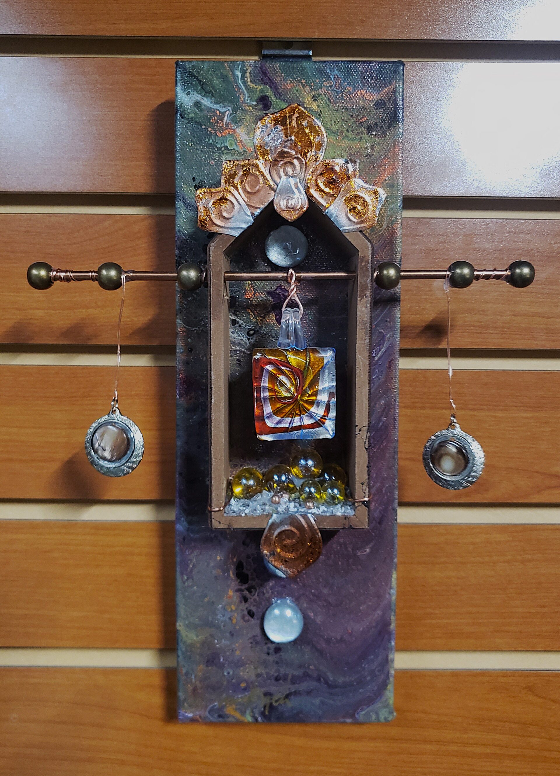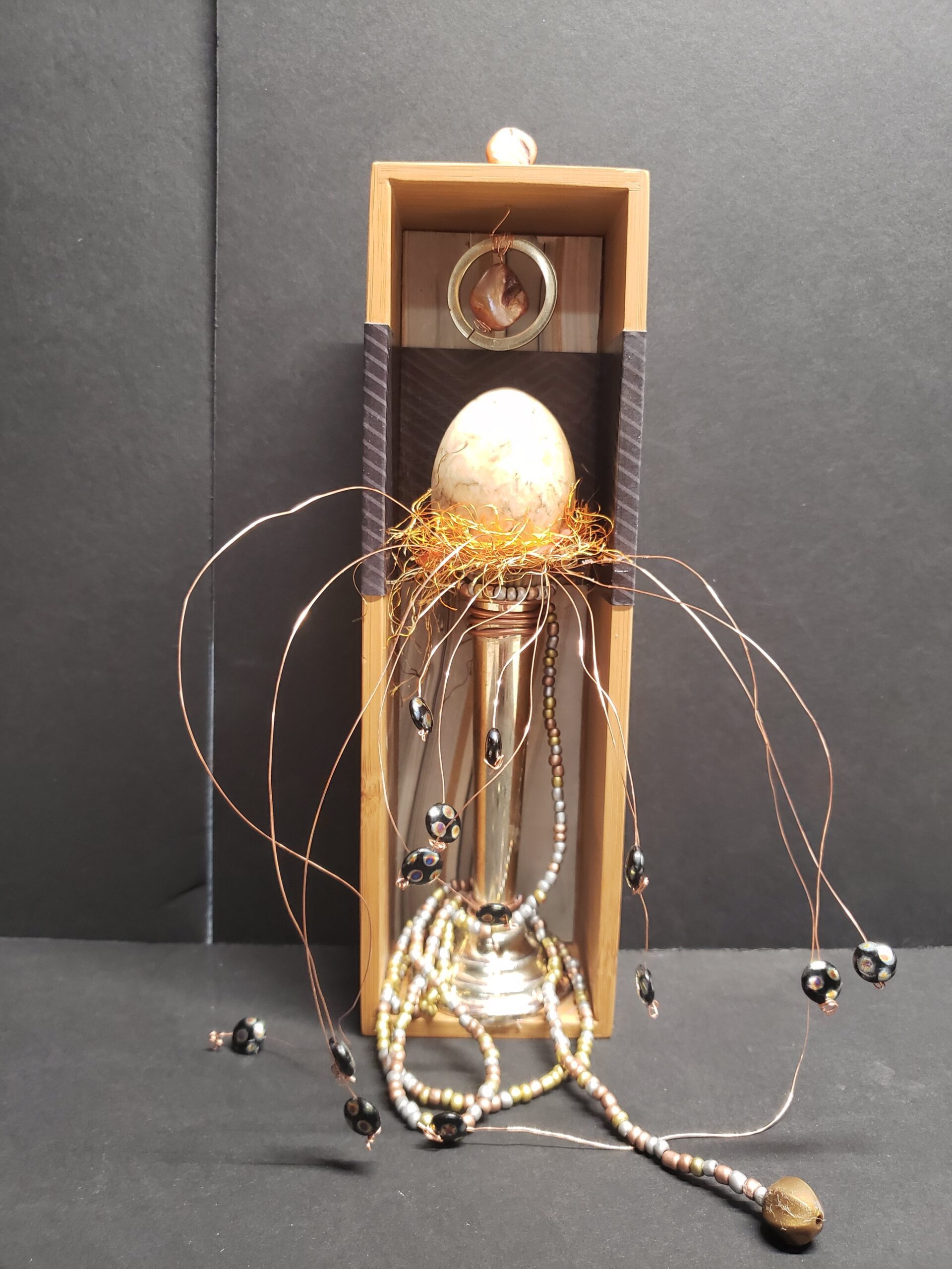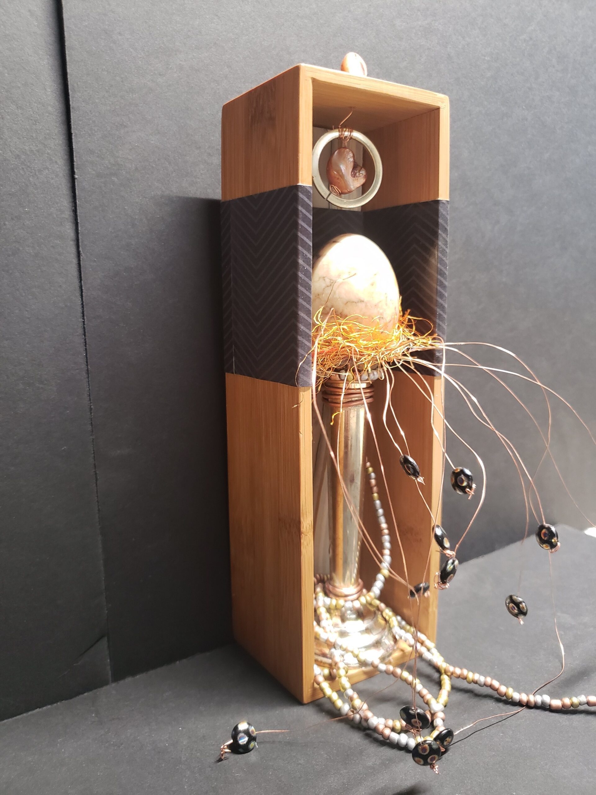 Do you remember creating dioramas in grade school? You know, the North American Native village scene with figures, teepees, fires animals, trees, etc. all in a shoebox on it’s side? Hence my inspiration for Curioboxity…boxes filled or built upon and adorned with a variety of curious, quirky and ordinary items. Some are created as a wall hanging, many can also be used a surface sitting art piece. All are one-of-a-kind using small antiques and collectables that I may never come across again.