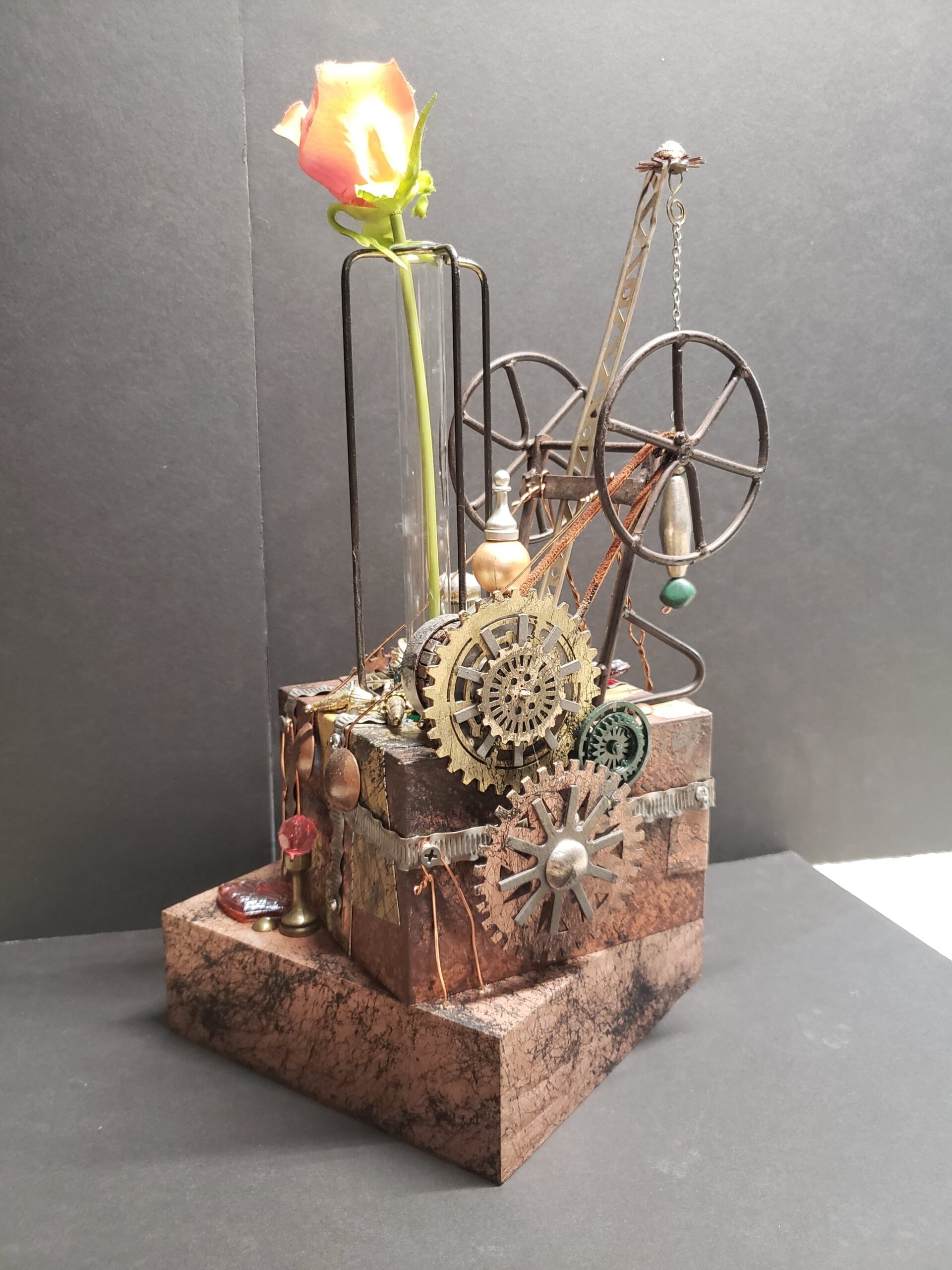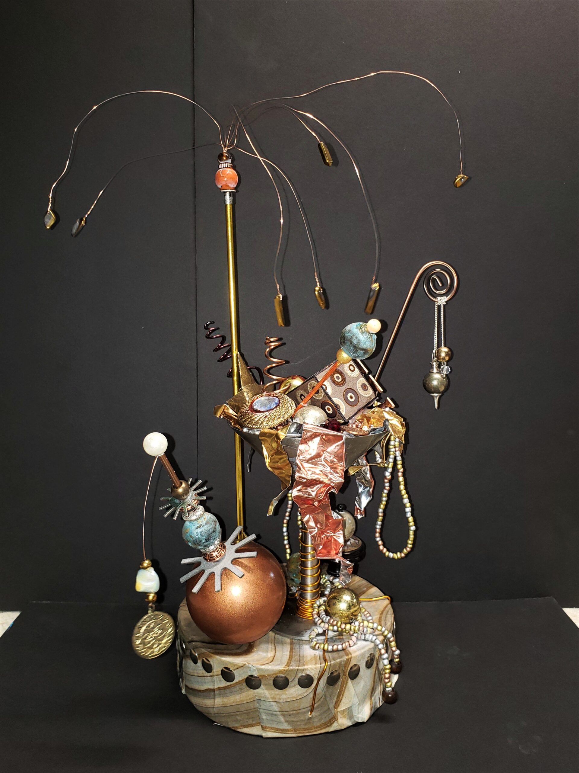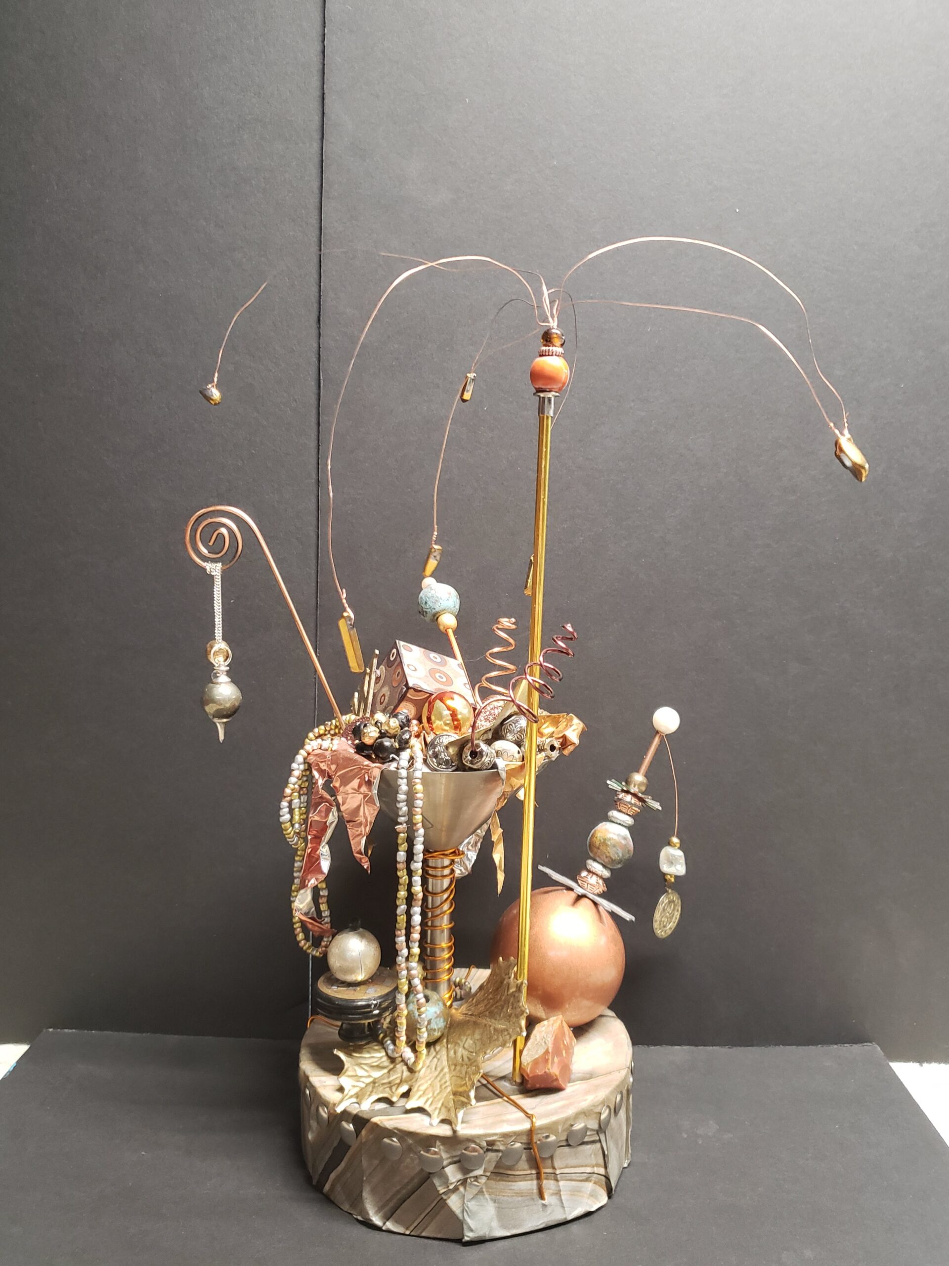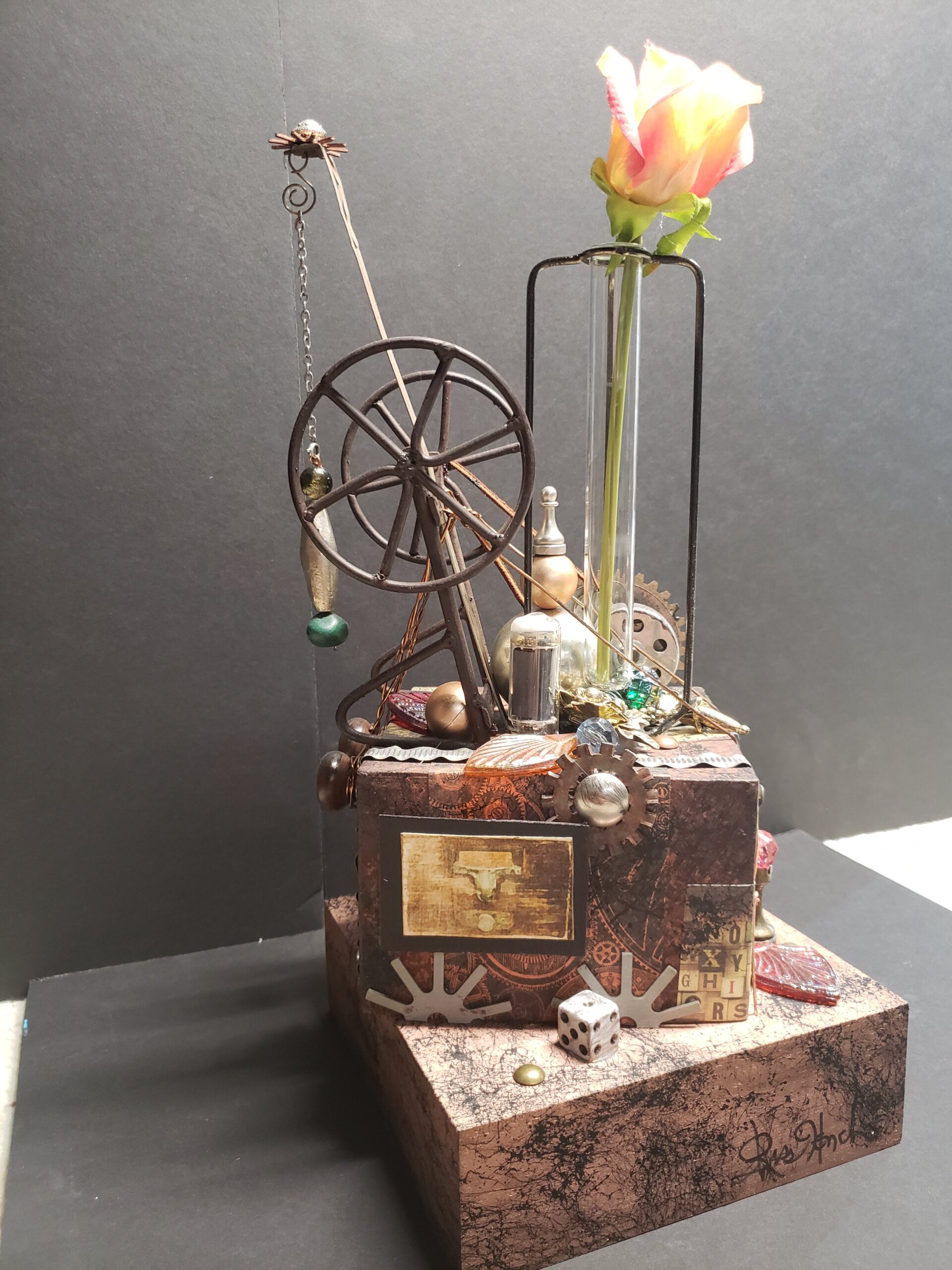 Do you remember creating dioramas in grade school? You know, the North American Native village scene with figures, teepees, fires animals, trees, etc. all in a shoebox on it’s side? Hence my inspiration for Curioboxity…boxes filled or built upon and adorned with a variety of curious, quirky and ordinary items. Some are created as a wall hanging, many can also be used a surface sitting art piece. All are one-of-a-kind using small antiques and collectables that I may never come across again.
