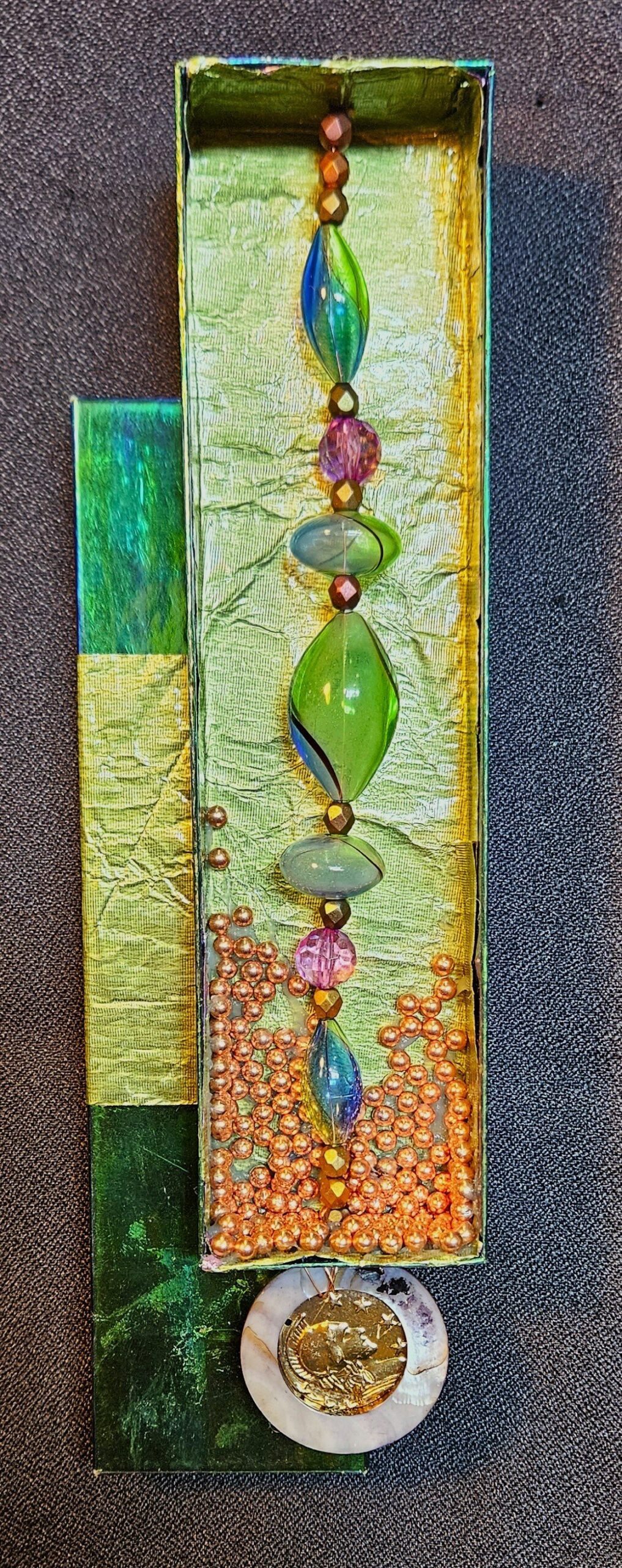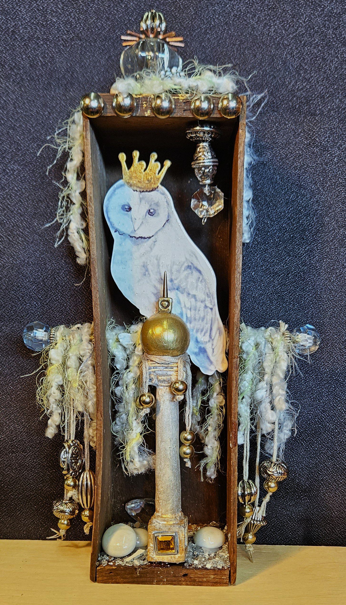 Do you remember creating dioramas in grade school? You know, the North American Native village scene with figures, teepees, fires animals, trees, etc. all in a shoebox on it’s side? Hence my inspiration for Curioboxity…boxes filled or built upon and adorned with a variety of curious, quirky and ordinary items. Some are created as a wall hanging, many can also be used a surface sitting art piece. All are one-of-a-kind using small antiques and collectables that I may never come across again.